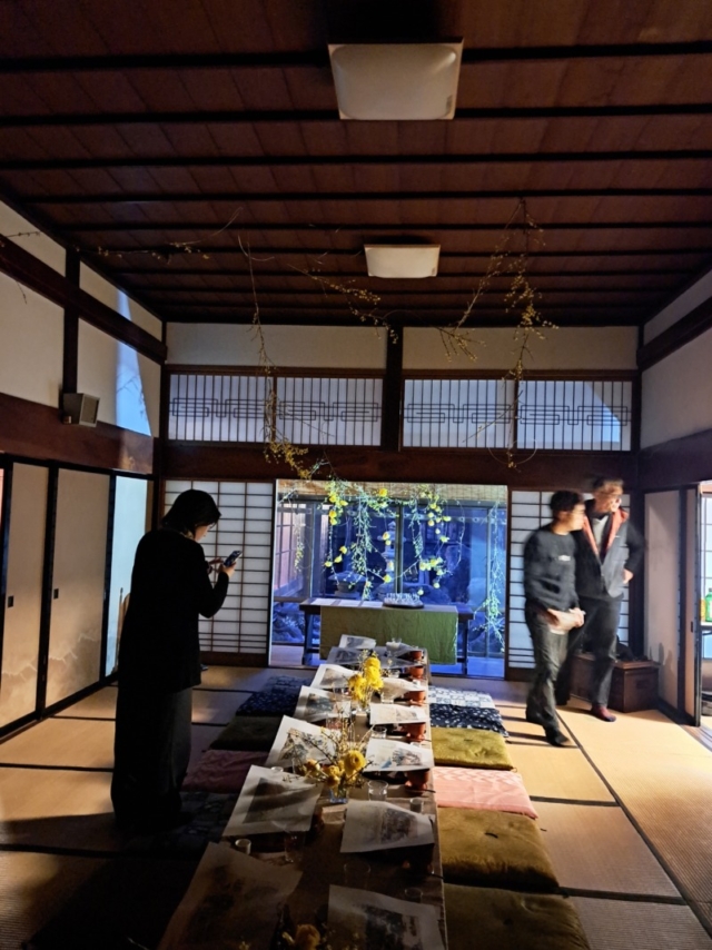 春が近くなる中、今日は庄内らしく吹雪と悪天候・・・・それでも庭園に静かに降りかぶさる雪景色と豪屋敷のコントラストが何とも言えない空間。東京からのみなさんも喜んでいただき、大成功の企画、ロングテ-ブルでした。。