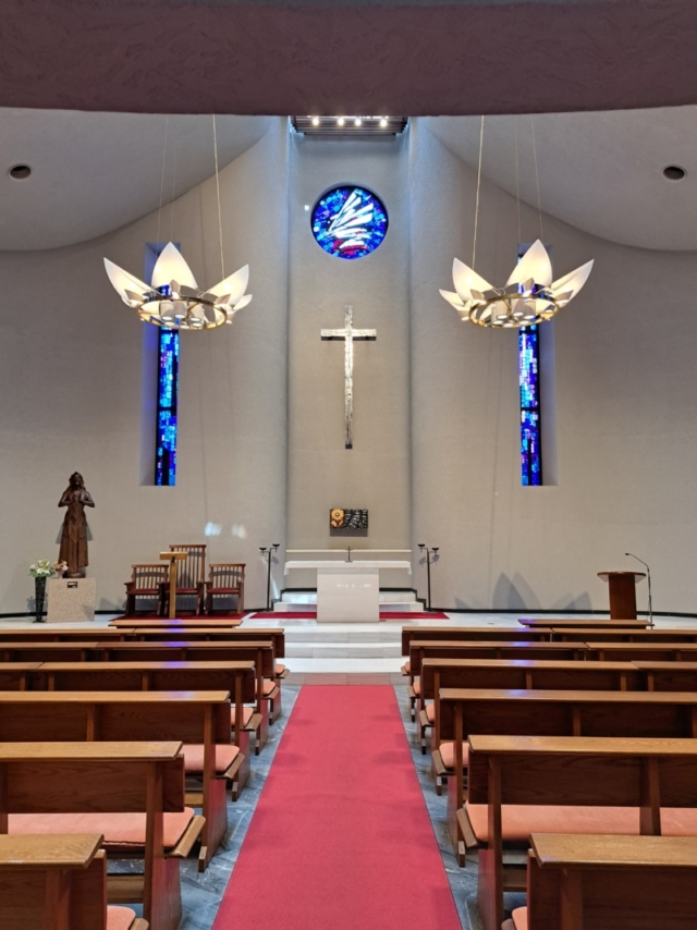 その中で構内の中に教会があり、ステンドグラスが眩しく光輝いているのが印象的で思わず写真をパチリ撮ってきました。