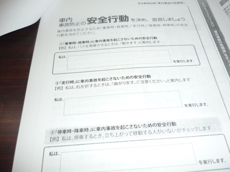 テーマは乗客が乗降する時の安全確保ということで乗務員、バスガイドが乗降する時の安全対策を各社員1名ずつ発表をしていただきました。