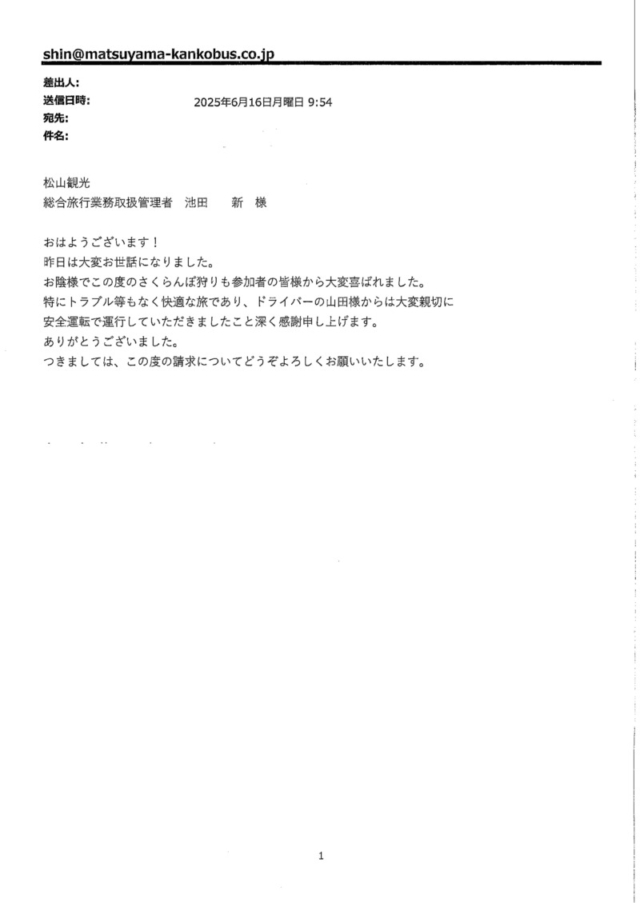 御礼メールが届きました!