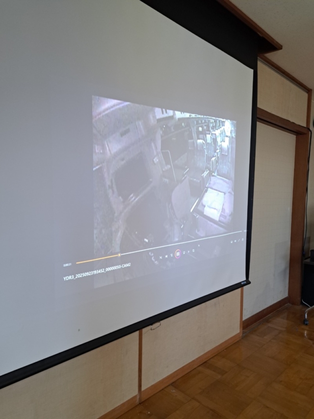 最後にドライブレコーダーによる物損事故の事故解析を行いました。9月にミラ-のひっかけやバックでの右前の物損事故が2件あり、いずれも確認不足による物損です。片方に気をとれると片方の注意が不足し、確認のバランスが崩れ、それが不確認になるようですのでバランスよく周りの状況を確認するよう指導しました。