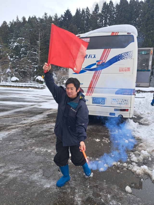 1月26日、山形県バス協会、栗田指導員をお迎えし、雪上訓練を実施しました。