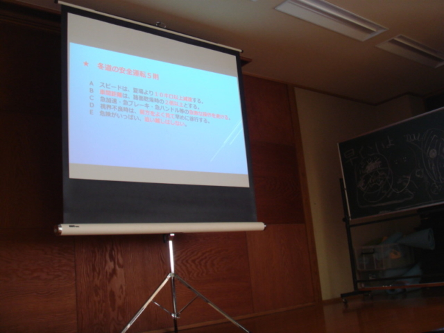 本年は雪が多く昨年よりスリップ事故が多発したようで、冬道の安全運転五原則をしっかり守り、慎重なる運転をしていいただきたいとのことでした。