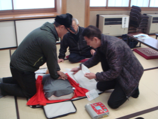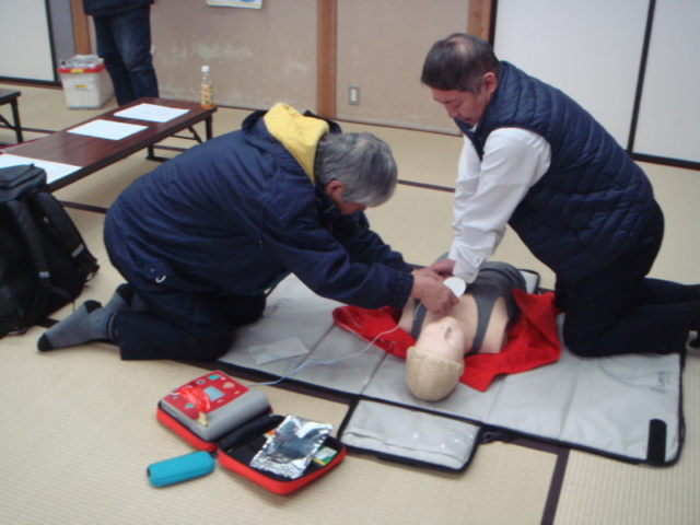 3月12日、酒田地区広域消防組合OBの高橋氏、能登山氏をお迎えし、AED講習・心肺蘇生、消火器訓練を行いました。
